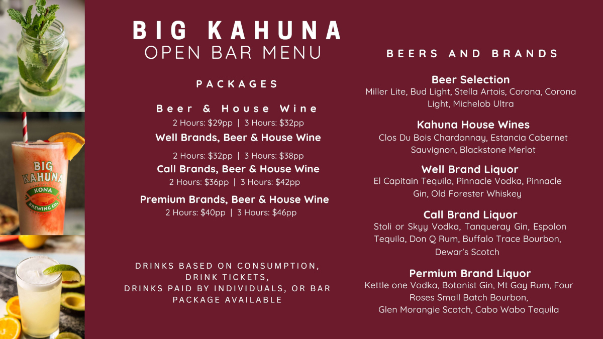 Contact our events and catering director Rahim to inquire about opportunities to host your next event at Big Kahuna, Atlanta’s surf style restaurant.
